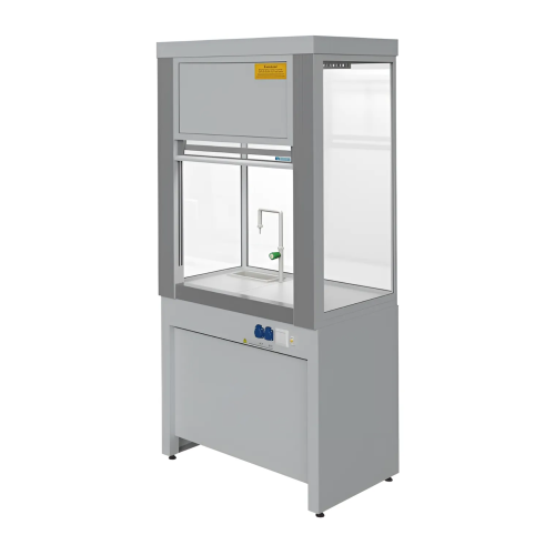 Шкаф вытяжной предназначен для оснащения лабораторий, кабинетов химии и физики общеобразовательных учреждений. Применяется для проведения демонстрационных опытов с использованием агрессивных летучих веществ. Стеклянные стенки шкафа позволяют наблюдать опыты с любой точки класса. Столешница выполнена из химически стойкой керамической плитки. В комплектации с подводом воды шкаф оснащен сливной раковиной, монокраном и арматурой для подключения воды.