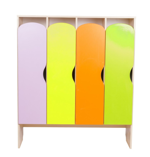 Шкафчик из четырёх секций предназначен для оснащения приемной зоны в ДОУ.
