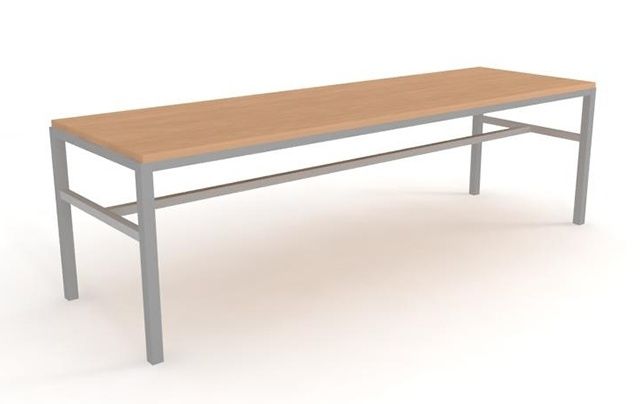 Классическая скамья без спинки размещается во входной зоне. Конструкция состоит из металлического каркаса на 4-х опорах, 2-х поперечных перекладин, 1 продольной перекладины, прямоугольного сиденья.