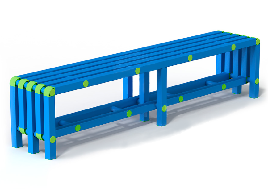 Скамейка без спинки подойдет для спортивной раздевалки, зала, сауны или бассейна. Может использоваться на открытом воздухе. Термостойкий пластик не боится влаги. Поверхность сохраняет форму и цвет. Каркас оснащен заглушками, углы закруглены. Тройные опоры укреплены продольными и поперечными перекладинами.