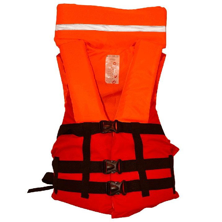 Индивидуальное спасательное средство регулируется по фигуре, надежно фиксируясь поясными боковыми ремнями и пряжками-застежками. Воротник поддерживает голову человека.