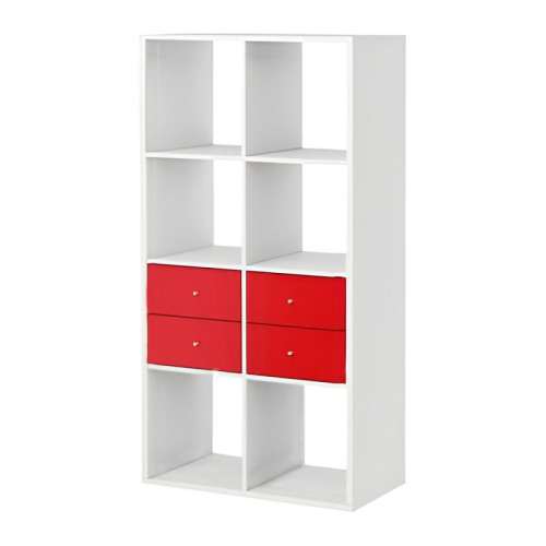 Прямоугольные отделения открытого типа делают все предметы доступными с обеих сторон. При желании стеллаж крепится к стене.