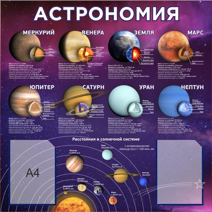 - изображениями планет Солнечной системы с названиями и краткой информацией,