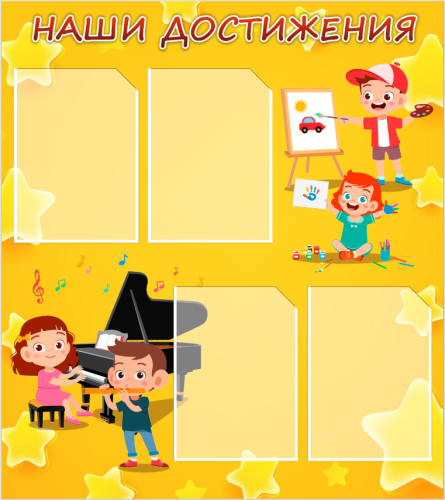 Данный стенд оснащен четырьмя вертикальными карманами формата А4, которые подойдут для размещения поделок, рисунков, фотографий и грамот детей.