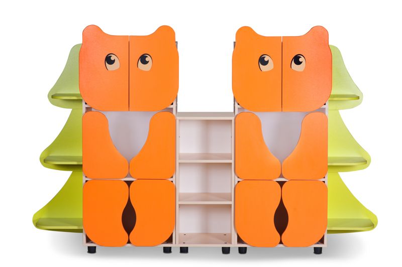 Стенка модульная игровая "Два Медведя" используется в детском саду для хранения игрушек и дидактических пособий. Высота игровой стенки всего 1,35 м, поэтому все необходимые предметы находятся в зоне досягаемости ребенка.
