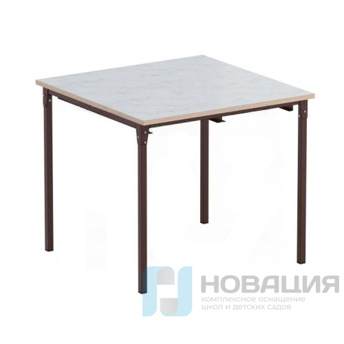 Обеденный стол для школы — устойчивая мебель с противоударной кромкой, металлокаркас которой окрашен износостойкой порошковой краской. Под столешницей предусмотрены металлические кронштейны для подвешивания табуретов.