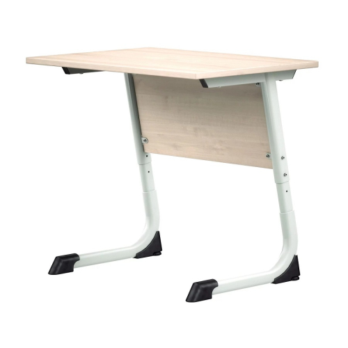 Регулируемый стол на металлокаркасе подходит для учебы. Оснащен двойными крючками по числу мест. Опоры прикрыты травмобезопасными наконечниками (2 из них с углом наклона 0- 60°, подстраиваются под неровности пола). Экран и столешница выполнены из ЛДСП с антивандальными кромками.