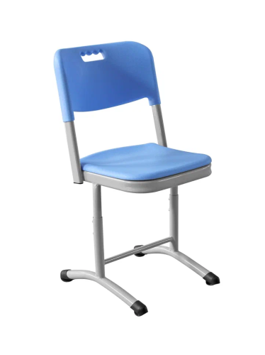 Верхняя часть каркаса стула изготовлена из стальной трубы диаметром 28 мм, а нижняя - из трубы 32 мм. В спинке есть отверстие для удобства переноски. Эргономичные спинка размером 245х410 и сиденье размером 370х390 мм с отверстиями для вентиляции выполнены из антивандального пластика.