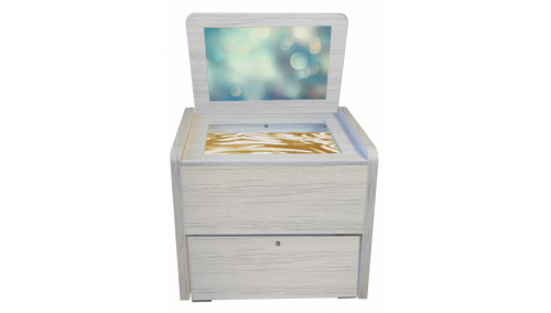 1. Интерактивная световая песочница. Со встроенным зеркалом из акрила и ящиком для инструментов. Защитная крышка служит столешницей. Цвет и интенсивность подсветки меняется. В комплекте кварцевый песок для игр и рисования, гребешки, метелка, совок, деревянные фигурки.
