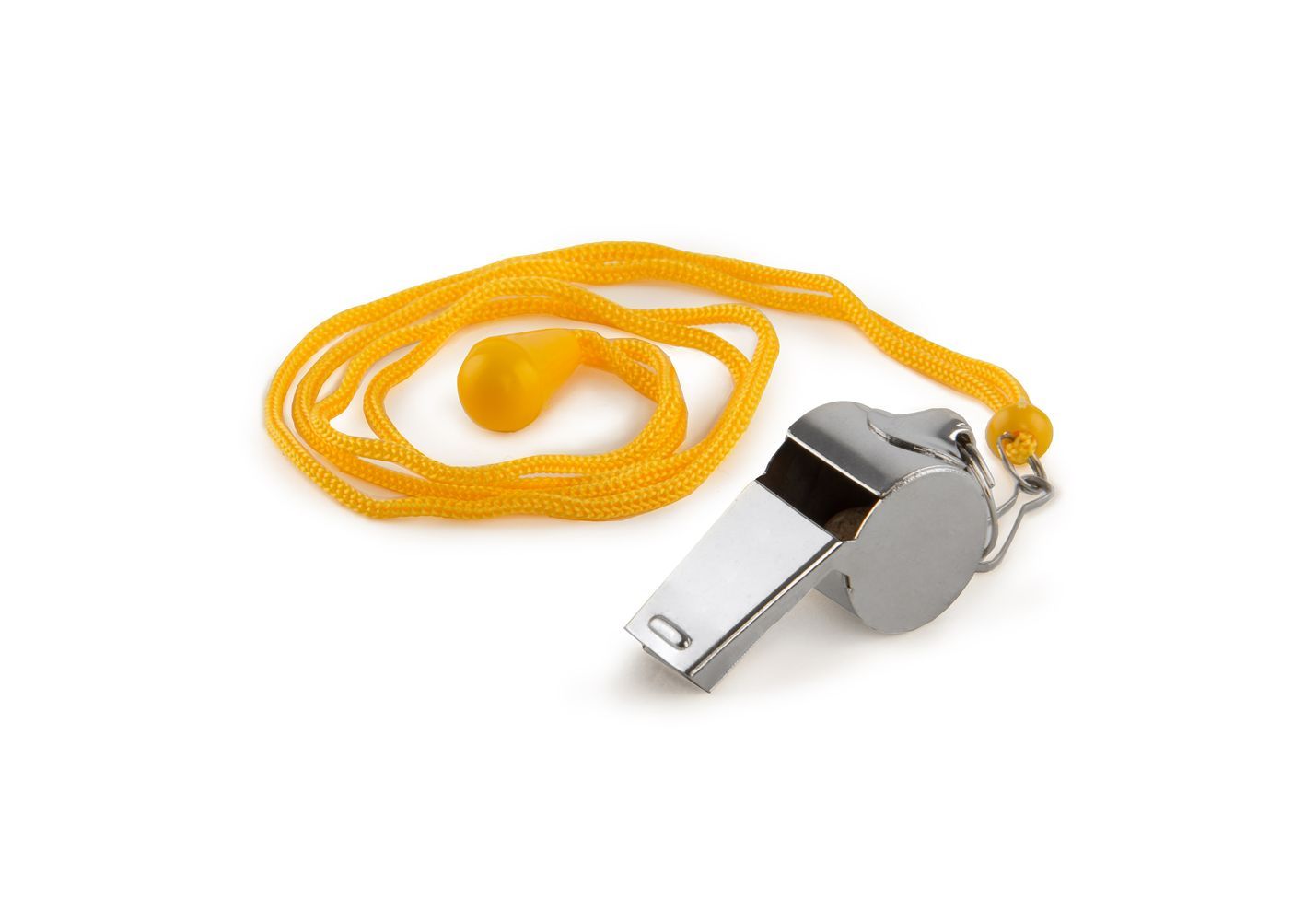 Металлический свисток на шнурке поставляется в специальном футляре.