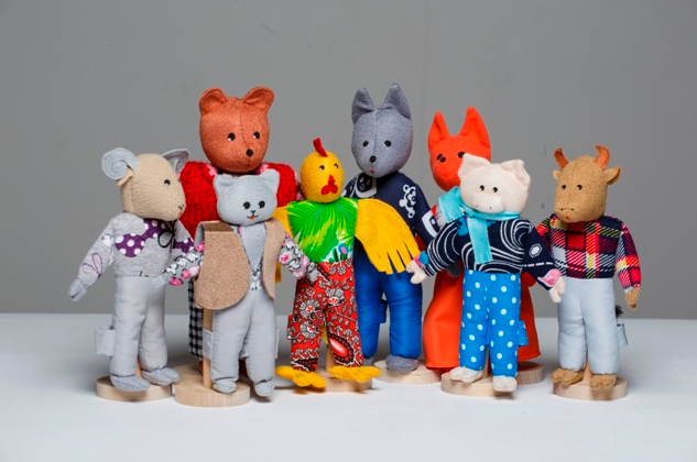 В комплекте 8 кукол: бык, поросенок, медведь, баран, петух, кот, лиса и волк.