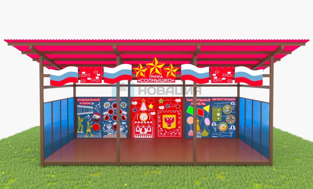 Подходит для размещения на уличной площадке ДОУ или детского лагеря.