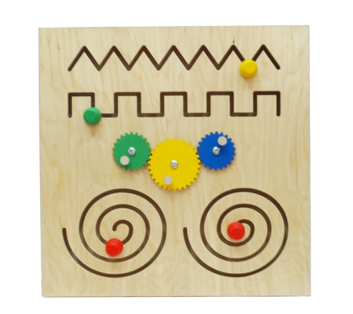 Включает такие элементы, как лабиринты и шестеренки. Выполнение упражнений развивает мелкую моторику, координацию движений, память и усидчивость.