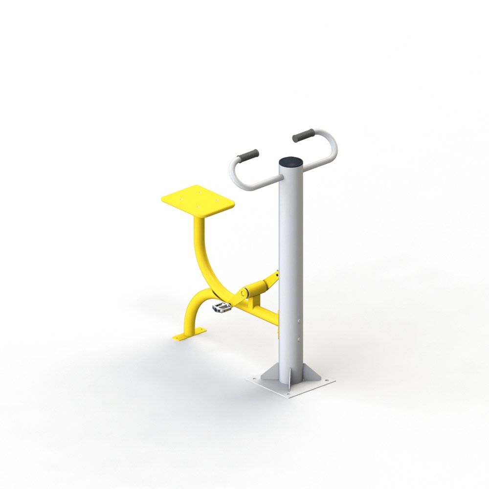 Несущая стойка с пластиковой заглушкой фиксируется на плоской металлической плите. К стойке присоединяются прорезиненные рукоятки и изогнутая труба, которая переходит в сиденье с педалями. Конструкция выдерживает перепады температур. Сиденье выполняется из влагостойкой фанеры, педали пластиковые.