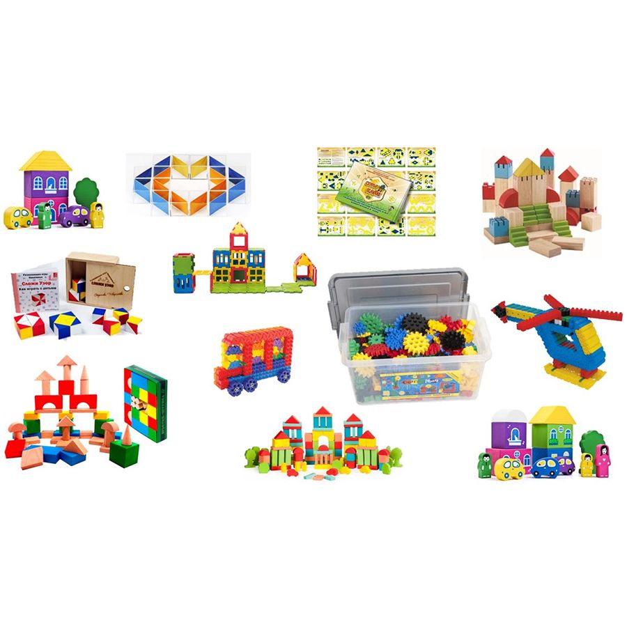 В комплекте: конструкторы, пазлы, движущиеся игрушки, дидактические пособия.