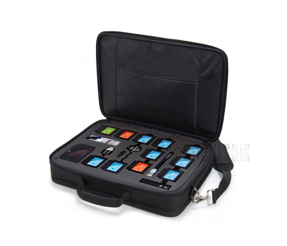 Комплектующие упакованы в кейс. Провода для соединения не требуются. Мобильное оборудование готово к применению в любых условиях (например, без компьютера). Модули используются вместе или отдельно друг от друга.