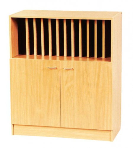 Тумба-стеллаж с вертикальными полками в верхней части — прекрасный вариант мебели для муниципального учреждения. Может размещаться в библиотеке, учебном или методическом кабинете ДОУ, школы.