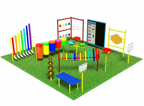 Игровой комплекс размещается на уличной территории. Занятия с оборудованием помогают детям (в том числе, имеющим ОВЗ) получить представление о творчестве. Площадка знакомит с музыкальными инструментами, нотами, ритмами, позволяет стать авторами спектакля, нарисовать пейзаж.