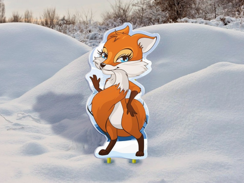Полноцветная фигура выполнена в виде лисы. Для защиты от погодных условий на поверхность нанесена пленка. Монтируется в грунт посредством металлических стоек и крепежа (входят в комплект).