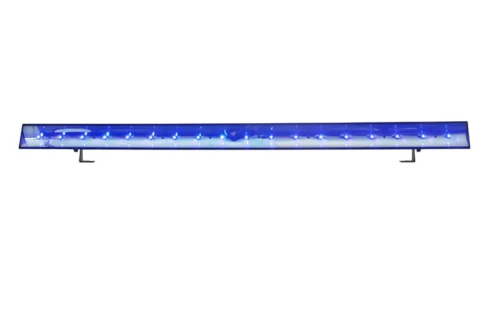 Представляет собой ультрафиолетовую световую панель с 18 светодиодами мощностью 3W. Предусмотрено 2 режима работы светильника: ручной и DMX-512. Оснащен входом и выходом IEC для гирляндного подключения питания, а также 3 DMX-каналами.