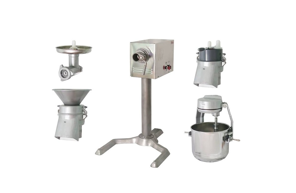 - разнообразные насадки: овощерезка-протирка, взбивалка (объем бака 25 л), механизм для изготовления мясного, рыбного и творожного фарша,