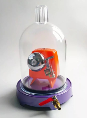 В основании прибора находится тарелка с ножками и краном, которая накрывается колоколом из толстого стекла.