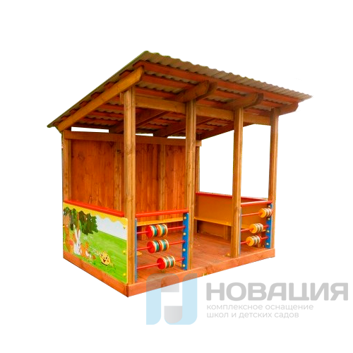 Беседка помогает организовать игры на свежем воздухе в независимости от погодных условий. Дети могут поиграть со счетами или отдохнуть на скамейке.