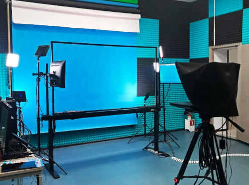 Студия предназначена для проведения онлайн-уроков и видеотрансляций с использованием камеры высокого разрешения (4K) и возможностью использования суфлёра. Доска с объем видеопамяти 6 гб с электроприводом имеет RGB LED подсветку стекла и LED подсветку спикера.