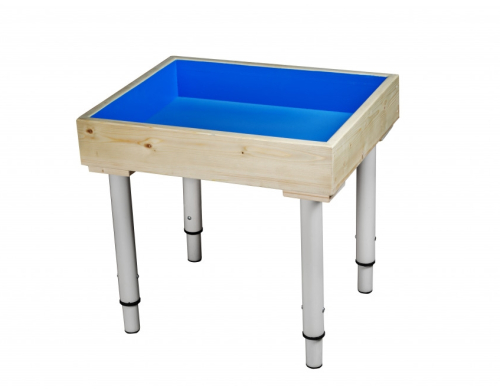 Дно песочницы выполнено из влагостойкой фанеры, внутри дно и бортики покрыты специальной "резиновой" краской голубого цвета, все швы тщательно загерметизированы, вся песочница покрыта безопасным водостойким лаком, что позволяет работать не только с влажным песком, но и с водой.