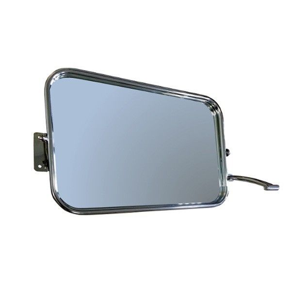 Зеркальное полотно в металлическом каркасе держится на 2-х кронштейнах. Угол наклона меняется, что удобно для людей с ОВЗ. Возможна замена полотна при откручивании от опоры. Небьющееся зеркало с высокой отражательной способностью подходит для установки в зонах переодевания и санузлах.