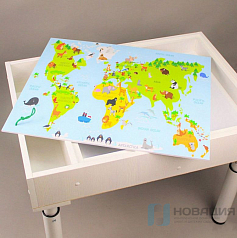 Практичный подход позволяет использовать съемную крышку как столешницу или игровое поле. На обе стороны (по желанию) наносится изображение космоса, ходилка, географическая карта или иной тематический рисунок.