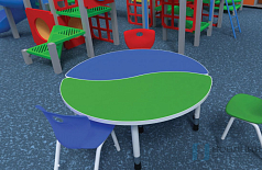 Такой стол с круглой рабочей поверхностью можно использовать во время развивающих занятий в группах. Высота четырех регулируемых ножек изменяется, что очень удобно для длительной эксплуатации в учреждениях такого типа.