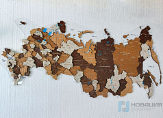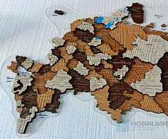 Деревянная карта России на прозрачном оргстекле, с подсветкой (борнео браун)