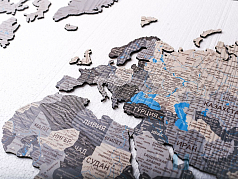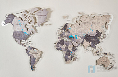 Деревянная карта мира на прозрачном оргстекле, с подсветкой (борнео грей)